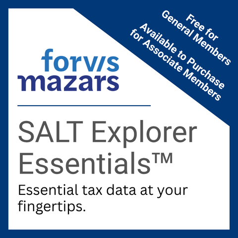 SALT Explorer Essentials provides up-to-date state and local tax rates and essential tax information. This web-based platform, created and provided to CFMA General Members as a member benefit by Forvis Mazars, LLP, helps construction financial professionals quickly and efficiently research compliance matters spanning contract licensing, state and local sales and use tax, and employment tax.